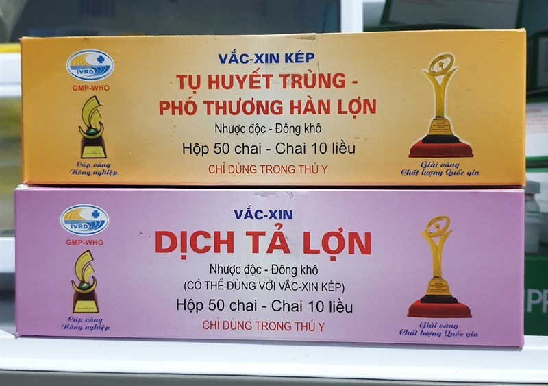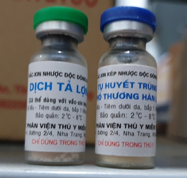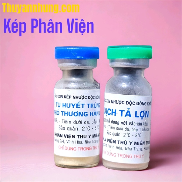HƯỚNG DẪN SỬA DỤNG VẮC-XIN DỊCH TẢ LỢNDÙNG CHUNG VỚI VẮC-XIN KÉPTỤ HUYẾT TRÙNG – PHÓ THƯƠNG HÀN, TỤ HUYẾT TRÙNG – ĐÓNG DẤU LỢN ĐẶC TÍNH KỸ THUẬTVắc-xin dịch tả lợn đông khô, được sản xuất từ vi-rút dịch tả lợn nhược độc chủng C, theo công nghệ đặc biệt của Phân viện thú y miền Trung. Vắc-xin này có thể dùng như vắc-xin Dịch tả lợn thông thường hoặc dùng chung với vắc-xin kép Tụ huyết trùng – Phó thương hàn, vắc-xin kép Tụ huyết trùng – Đóng dấu lợn, để khi tiêm một mũi phòng được 3 bệnh.Vắc-xin có tính ổn định cao về an toàn và hiệu lực.CHỈ ĐỊNHDùng để tạo miễn dịch chủ động phòng bệnh Dịch tả cho lợn.Khi kết hợp vắc-xin Dịch tả lợn với vắc-xin kép Tụ huyết trùng – Phó thương hàn: tạo miễn dịch chủ động phòng đồng thời 3 bệnh Dịch tả, Tụ huyết trùng và Phó thương hàn cho lợn.Khi kết hợp vắc-xin Dịch tả lợn với vắc-xin kép Tụ huyết trùng – Đóng dấu: tạo miễn dịch chủ động phòng đồng thời 3 bệnh Dịch tả, Tụ huyết trùng và Đóng dấu cho lợn.CÁCH SỬ DỤNGDùng dung dịch pha vắc-xin hoặc nước muối sinh lý vô trùng lần lượt hòa tan chai vắc-xin Dịch tả lợn và vắc-xin kép THT – PTH hoặc vắc-xin Dịch tả lợn và vắc-xin kép THT – ĐDL; dùng bơm tiêm hút và trộn chung 2 chai vắc-xin với nhau, thêm dung dịch pha sao cho 1ml chứa 1 liều vắc-xin .Tiêm bắp hoặc dưới da 1 ml vắc-xin (1 liều) cho lợn từ 3 tuần tuổi trở lên. Nên tiêm nhắc lại sau 2 tuần.Sau khi pha, vắc-xin phải được giữ lạnh, tránh ánh nắng trực tiếp và dùng ngay trong vòng 2 – 3 giờ.QUY CÁCH SẢN PHẨMVắc-xin dịch tả lợn dạng đông khô, mỗi chai chứa 10 liều.BẢO QUẢNVắc-xin được bảo quản ở nhiệt độ từ 2 0C đến 8 0HẠN SỬ DỤNG18 tháng kể từ ngày sản xuất.SỐ ĐĂNG KÝ: TW – IV – 3Chú ý: – Bơm tiêm và kim tiêm phải được tiệt trùng trước và sau khi sử dụng (không được tiệt trùng bằng hóa chất)..– Chỉ được dùng vắc-xin Dịch tả lợn loại “có thể dùng với vắc-xin kép” do Phân viện Thú y miền Trung sản xuất để tiêm chung với vắc-xin kép THT – PTH hoặc vắc-xin kép THT – ĐDL. – Không sử dụng vắc-xin quá hạn. CHỈ DÙNG TRONG THÚ Y