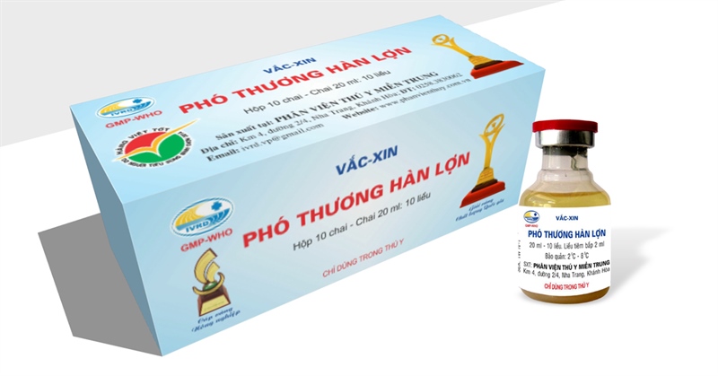 Vắc-xin Phó Thương Hàn LợnĐẶC TÍNH KỸ THUẬTVắc-xin vô hoạt, được sản xuất từ vi khuẩn Salmonella cholerae suis chủng S1, S2, S3 và S4 theo công nghệ lên men hiện đại, bổ sung chất bổ trợ keo phèn (nhôm hydroxit) nhằm tăng cường và kéo dài khả năng gây miễn dịch của vắc-xin.Vắc-xin có tính ổn định cao về an toàn và hiệu lực, rất tiện lợi cho việc sử dụng.CHỈ ĐỊNHDùng để tạo miễn dịch chủ động phòng bệnh Phó thương hàn cho lợn.THÀNH PHẦNTrong 1 ml vắc-xin chứa ít nhất 10 x 109 tế bào vi khuẩn Salmonella cholerae suis.Chất bổ trợ: Keo phèn (nhôm hydroxit).CÁCH SỬ DỤNGLấy chai vắc-xin ra khỏi nơi bảo quản, đưa về nhiệt độ phòng (20-250C), lắc kỹ chai vắc-xin trước khi sử dụng và sử dụng hết chai vắc-xin trong ngày.Tiêm bắp hoặc dưới da cho lợn từ 3 tuần tuổi trở lên, với liều 2ml/con. Nên tiêm nhắc lại sau 3 tuần.Lợn hậu bị và nái đẻ: Tiêm nhắc lại 2 tuần trước khi phối giống, liều 2 ml/ con.Lợn đực giống: Tiêm nhắc lại sau mỗi 6 tháng, liều 2 ml/ con.QUY CÁCH SẢN PHẨMVắc-xin đóng chai: 10 ml chứa 5 liều; 20 ml chứa 10 liều; 50 ml chứa 25 liều; 100 ml chứa 50 liều.BẢO QUẢNVắc-xin được bảo quản ở nhiệt độ từ 20C đến 80C, không để vắc-xin vào ngăn đông đá, tránh ánh nắng mặt trời chiếu trực tiếp.HẠN SỬ DỤNG18 tháng kể từ ngày sản xuất.SỐ ĐĂNG KÝ: TW IV-1Chú ý: – Bơm tiêm và kim tiêm phải được tiệt trùng trước và sau khi sử dụng(không được tiệt trùng bằng hóa chất).– Không tiêm vắc-xin cho lợn ốm.– Không sử dụng vắc-xin quá hạn.CHỈ DÙNG TRONG THÚ Y