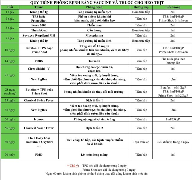 Ghi chú: Lịch trình tiêm chủng có thể thay đổi tùy thuộc vào tình hình thực tế tại trang trại.