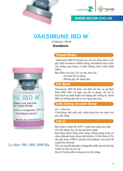 Vaccine Tigervet Vaksimune IBD M – GUMBORO – lọ 1.000 liều