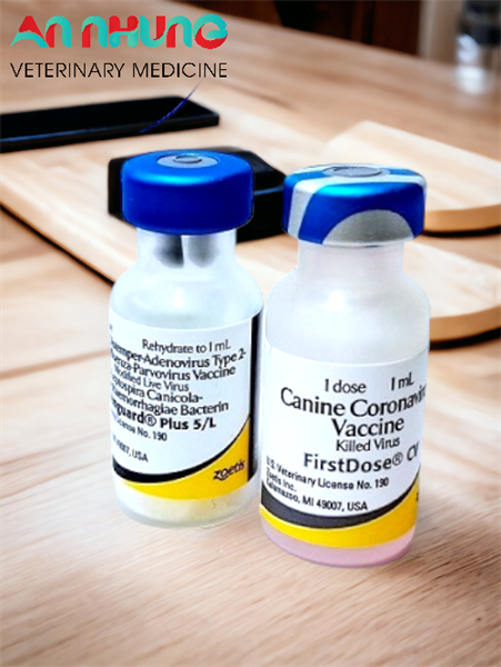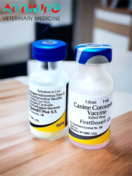 THÀNH PHẦN MỖI LIỀU VẮC XIN VANGUARD PLUS 5/CV-L CÓ CHỨA:Vắc xin đông khô (Vanguard®Plus 5/L): Cannine Parvovirus nhược độc ≥ 107.2 TCID50Cannine Distemper Virus nhược độc ≥ 103.5 TCID50Cannine Adenovirus type 2 (CAV2) nhược độc ≥ 103.4 TCID50Cannine Parainfluenza virus nhược độc ≥ 105.5 TCID50Leptospira Canicola vô hoạ ≥ 600 NULeptosprira icterohaemorrhagiae vô hoạt ≥ 600 NUTá dược gồm: Gentamicin, Merthiolate, Casein Hydrolysate Stabilizer Solution, Gelatin Stabilizer Solution, Sucrose Stabilizer Solution, Antifoam 10%, Hanks’ Medium… Vắc xin dạng lỏng (FirstDose®CV) gồm có:Canine Coronavirus ≥ 2.50 RPTá dược gồm: Gentamicin, Aluminum hydroxide, Hanks’ Medium.
