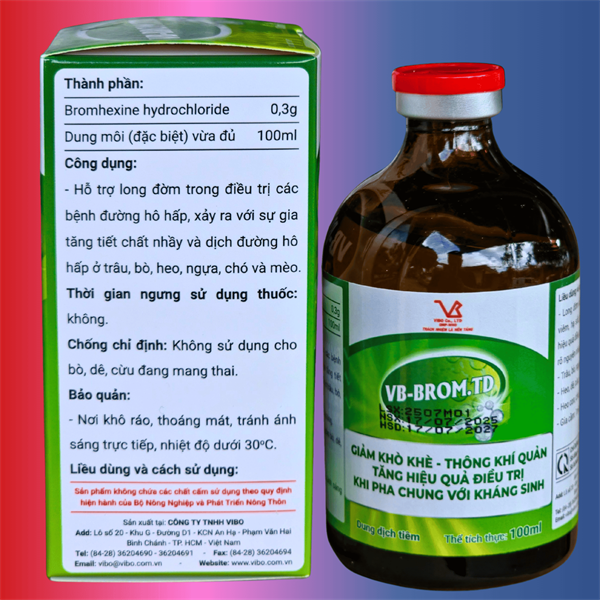 ✨🔥 Dung Dịch Tiêm VIBO VB-BROM.TD (100ml) – Hỗ Trợ Long Đờm, Thông Khí Quản, Hạ Sốt Cho Vật Nuôi