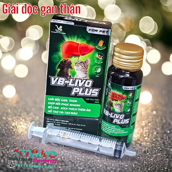 Boss nhà bạn đang gặp tình trạng vàng da, bụng chướng, mệt mỏi do ký sinh trùng máu hoặc cần phục hồi sau thời gian dài dùng kháng sinh? VB-LIVO PLUS là giải pháp siro uống cao cấp, kết hợp giữa Acid amin thiết yếu và Thảo dược quý, giúp bảo vệ “bộ máy lọc” của thú cưng một cách an toàn nhất.