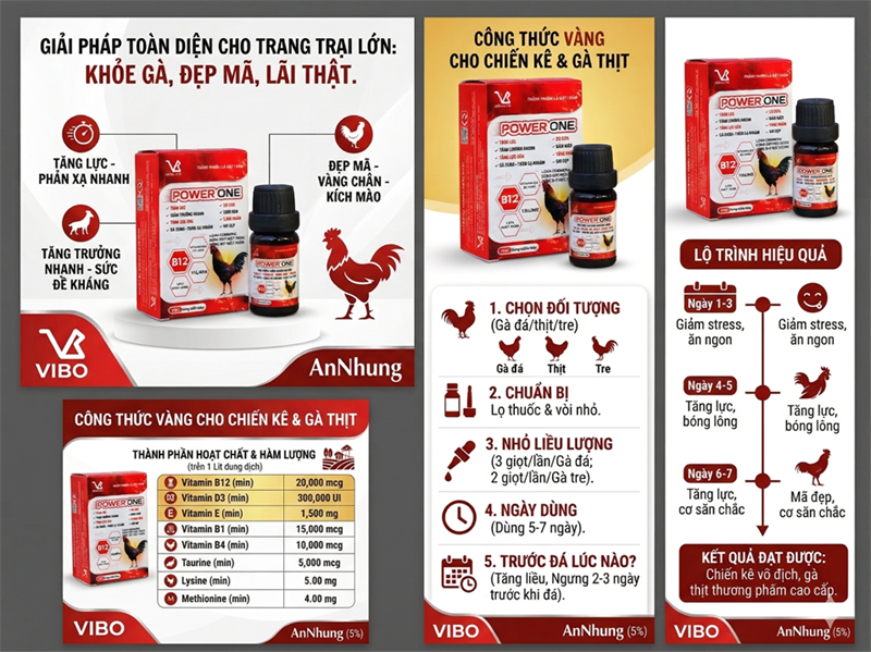 POWER ONE không chỉ là vitamin thông thường mà là giải pháp tổng thể cho gà chọi và gia cầm: