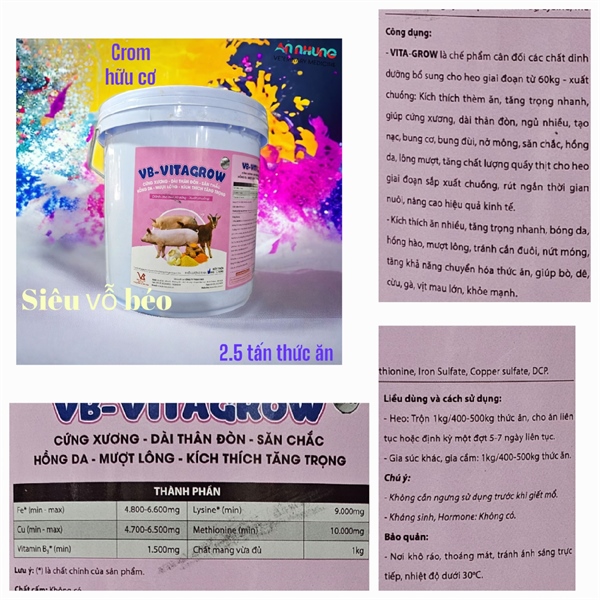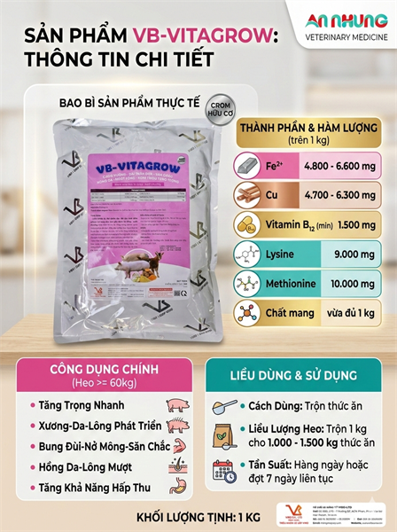 ⭐VB-VITAGROW⭐ Hỗ trợ heo cứng xương, dài thân, săn chắc, hồng da, mượt lông
