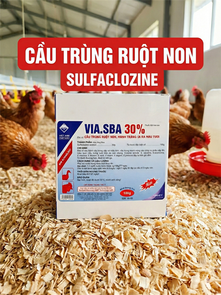 Bột VIAVET VIA.SBA 30% – Giải Pháp Cầu Trùng, Phân Sáp, Máu Tươi Cho Gia Cầm & Heo (Gói 1Kg)