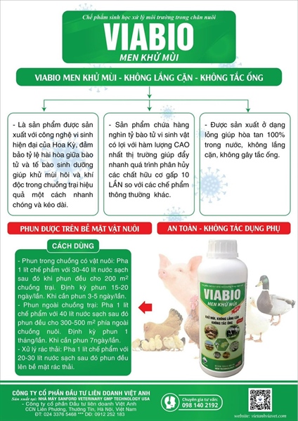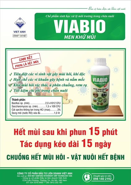 Bạn đang tìm kiếm giải pháp hiệu quả để cải thiện môi trường chăn nuôi, giảm mùi hôi và hỗ trợ sức khỏe vật nuôi? VIABIO MEN KHỬ MÙI chính là lựa chọn tối ưu! Với công nghệ sinh học hiện đại từ Hoa Kỳ, sản phẩm mang đến hiệu quả vượt trội, giúp không gian chăn nuôi trong lành và vật nuôi phát triển tối ưu.