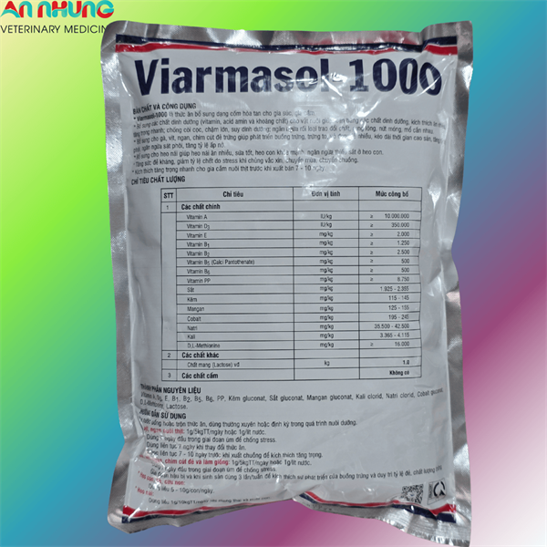 VIARMASOL-1000 là một sản phẩm bổ sung dinh dưỡng tổng hợp, đóng vai trò then chốt trong việc tối ưu hóa sức khỏe, tăng trưởng và năng suất sinh sản của vật nuôi. Sử dụng đúng cách và hợp lý sẽ mang lại hiệu quả kinh tế vượt trội cho bà con chăn nuôi!