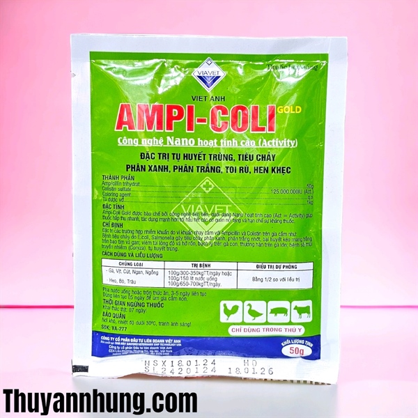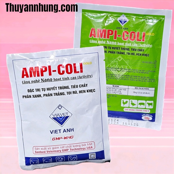 THUỐC THÚ Y AMPI-COLI (GOLD)ĐẶC TRỊ TỤ HUYẾT TRÙNG, TIÊU CHẢY PHÂN XANH, PHÂN TRẮNG, TOI RÙ, HEN KHẸC.