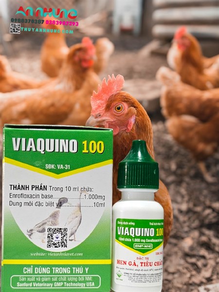 VIAVET Quino 100 (Hen Gà, Tiêu chảy) Oral 10ml – Hộp 10 lọ