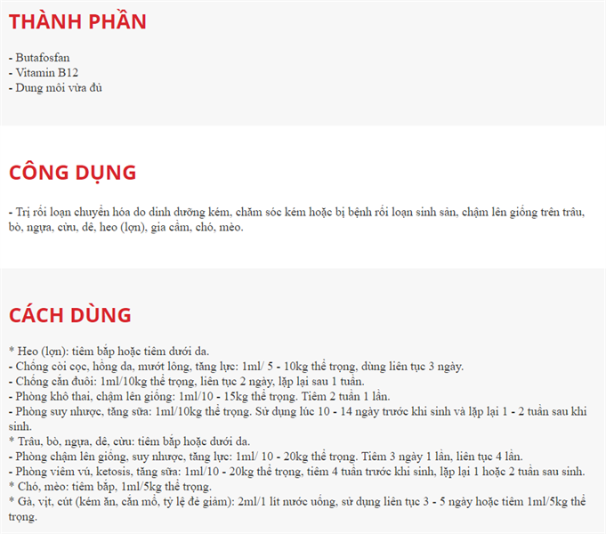 – Phòng chậm lên giống, suy nhược, tăng lực: 1ml/10-20kg thể trọng. Tiêm 3 ngày 1