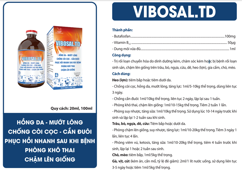 – Chống còi cọc, hồng da, mướt lông, tăng lực: 1ml/5-10kg thể trọng, dùng liên tục