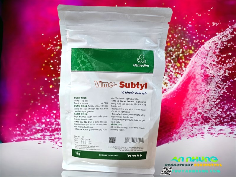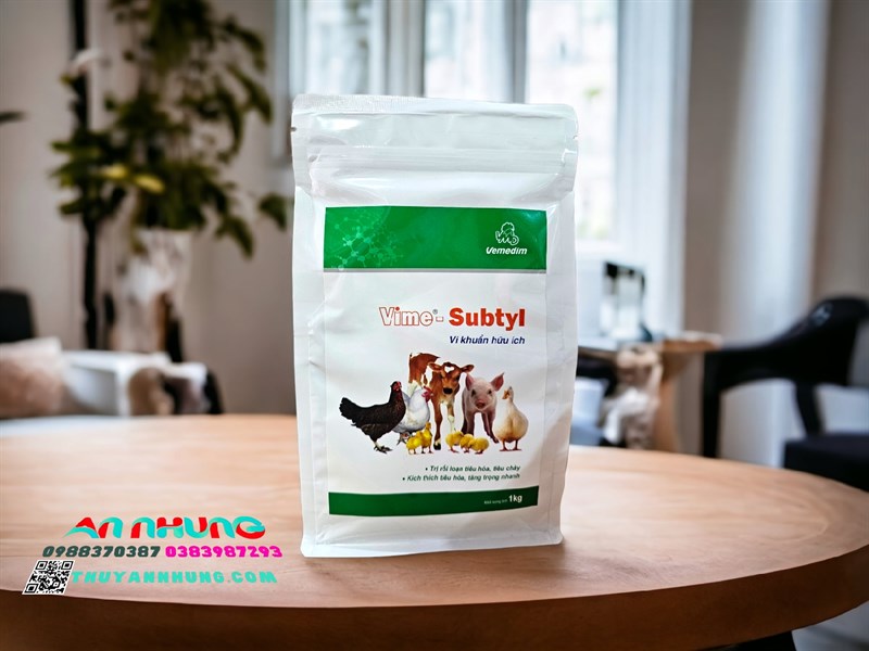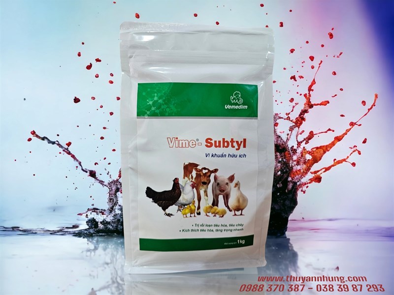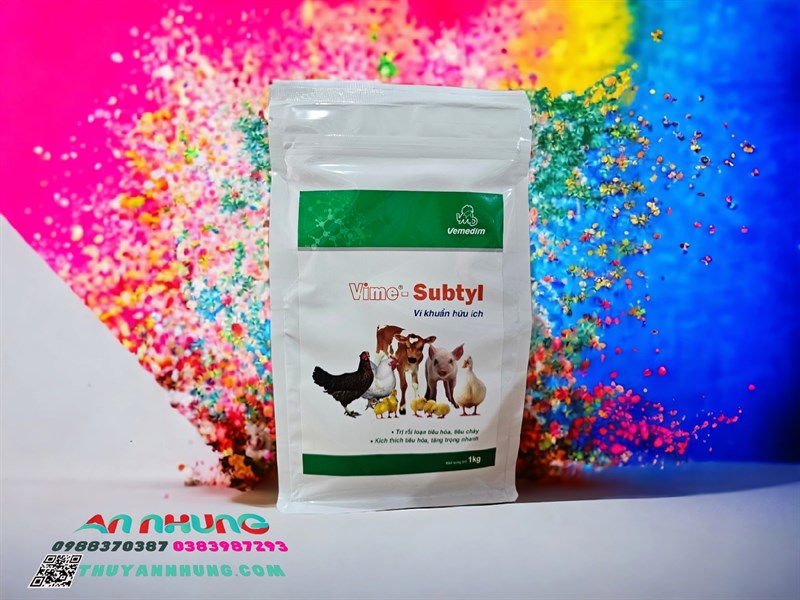 Trị tiêu chảy, viêm đại tràng, còi cọc, rối loạn tiêu hóa.THÀNH PHẦN:Trong 100 g có chứa:Bacillus subtilis 107- 10 8 CFU
