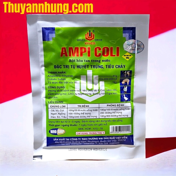 Công dụng:- Gia cầm (Gà, vịt, ngan, ngỗng, cút): Đặc trị gà rù, gà toi, ỉa chảy, phân trắng, phân vàng, tiêu chảy do E.Coli, Salmonella, sưng phù đầu, CRD,…- Trâu, bò, dê, lợn: Điều trị nhiễm trùng đường tiêu hóa, hồng lỵ, tiêu chảy, viêm ruột do E.Coli, Salmonella, tụ huyết trùng, lợn con phân trắng, viêm phổi, phó thương hàn, viêm khớp, viêm vú,…