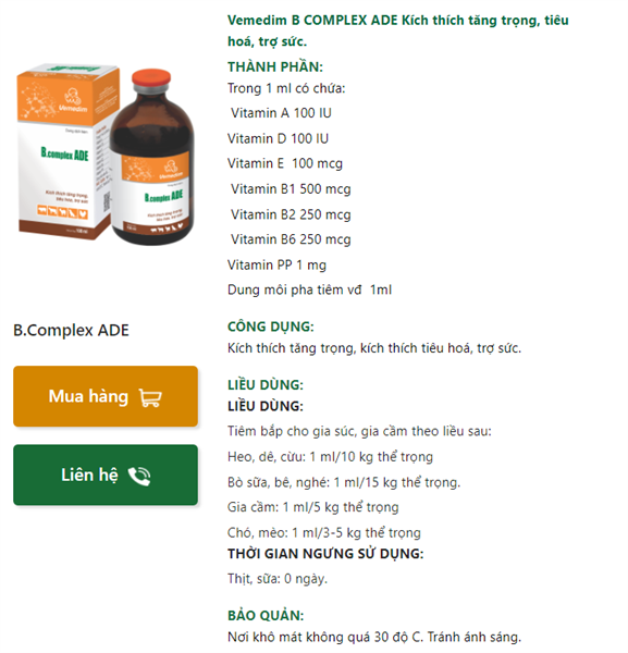 Vemedim B COMPLEX ADE Kích thích tăng trọng, tiêu hoá, trợ sức.
