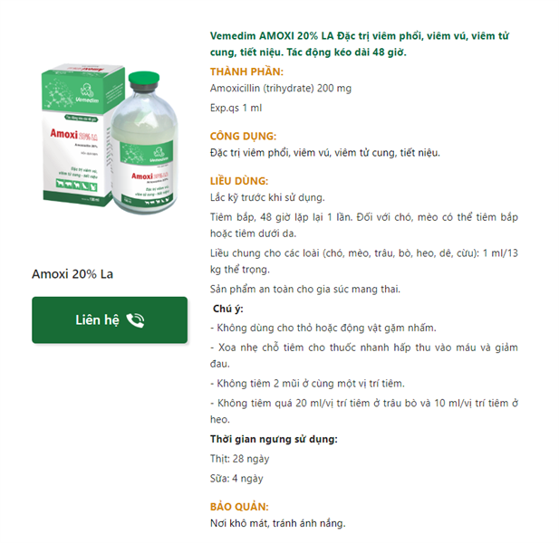 Giới thiệu sản phẩm AMOXI 20% LA – Đặc trị viêm phổi, viêm vú, viêm tử cung, tiết niệu cho gia súc!