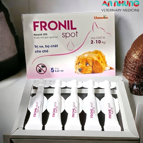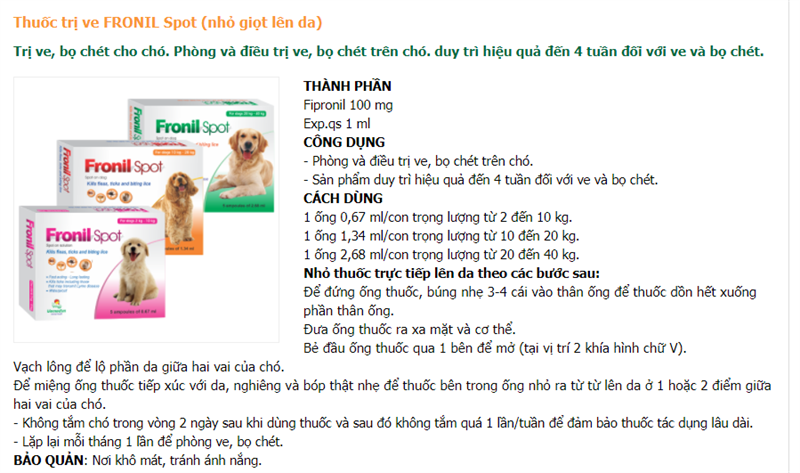 Vemedim FRONIL SPOT – Trị ve, bọ chét cho chó. Phòng và điều trị ve, bọ chét trên chó. duy trì hiệu quả đến 4 tuần đối với ve và bọ chét.